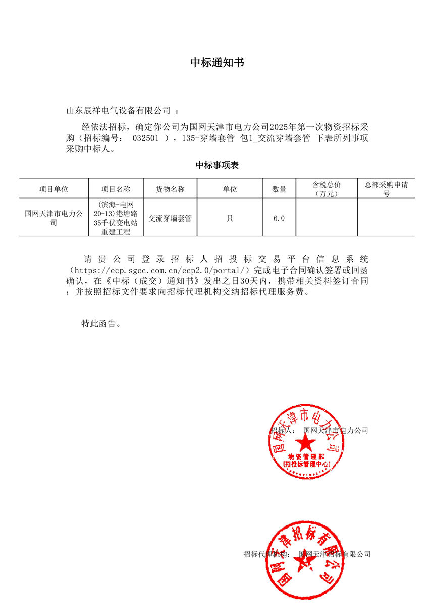 2025.02.14 110kV瓷絕緣穿墻套管中標通知書